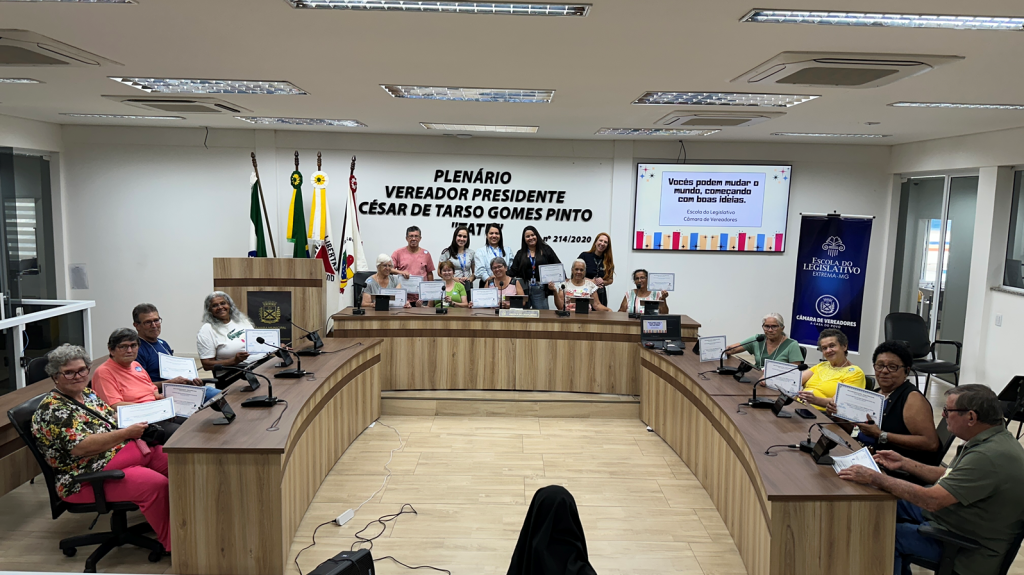 Além disso, os participantes vivenciaram a atividade “Vereador por um Dia”, em que debateram ideias, ouviram opiniões e votaram projetos sobre temas como saúde, impostos, transporte público e mobilidade urbana.